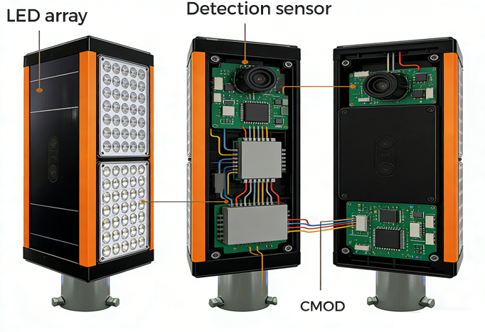 視界が悪化(設計閾値に達した場合)または暗闇(夜間)になると、道路両側の照明システムが自動的に作動します。黄色の警告灯が点灯し、低視界環境下で高コントラストな道路ライン誘導を提供します。車両が装置を通過すると、赤外線トリガーが作動し、赤色警告灯が点灯して赤い軌跡を形成し、前方に車両が存在することを示し安全距離を保つよう促します。車両が次の装置群を通過する際、赤色軌跡は車両の動きに同期して移動します。